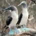 Boobies and gannets are large seabirds with long, heavy, pointed wings and long tails. Most have light-colored underparts and darker upperparts. Many members of this group are white. They are strong flyers, alternating between powerful wing beats and long glides. Most are sociable, nesting in colonies and foraging in flocks. They eat fish, squid, and other aquatic creatures, which they catch with spectacular plunge-dives. Their eyes are set forward on their heads, and this gives them binocular vision that aids them in foraging. When they plunge into the water, they use their wings to swim. They begin breeding at two to six years. Gannets and boobies are monogamous, and often form long-term pair bonds. Males bring nest material, and females build the nests. Both members of the pair help incubate the young by tucking one to three eggs under their webbed feet. Incubation lasts up to eight weeks, and the parents alternate in three-day shifts. Some species do not fledge until they are almost six months old, and are commonly dependent on both parents for up to nine months after that. Boobies are found in tropical waters, while gannets can be found in more temperate seas.